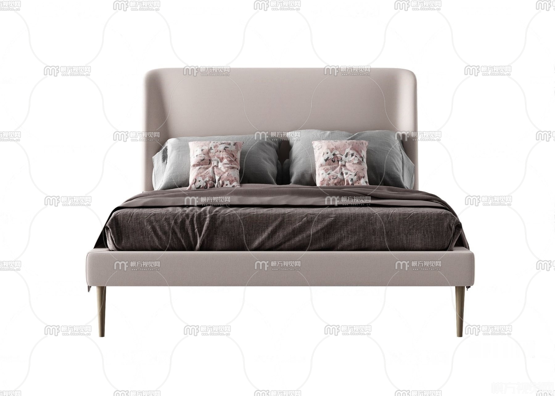 现代布艺双人床3D模型(ID:0020176)