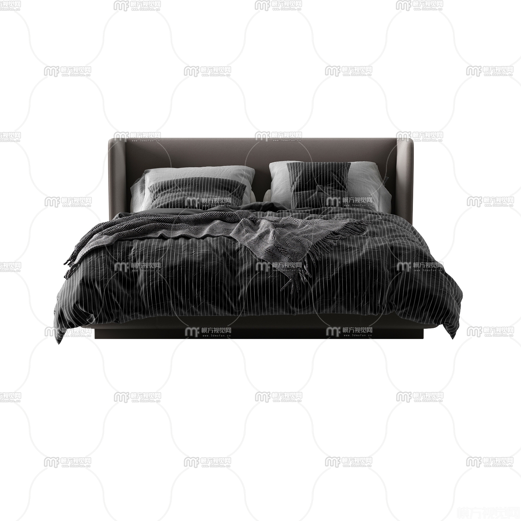 现代布艺双人床3D模型(ID:0020208)