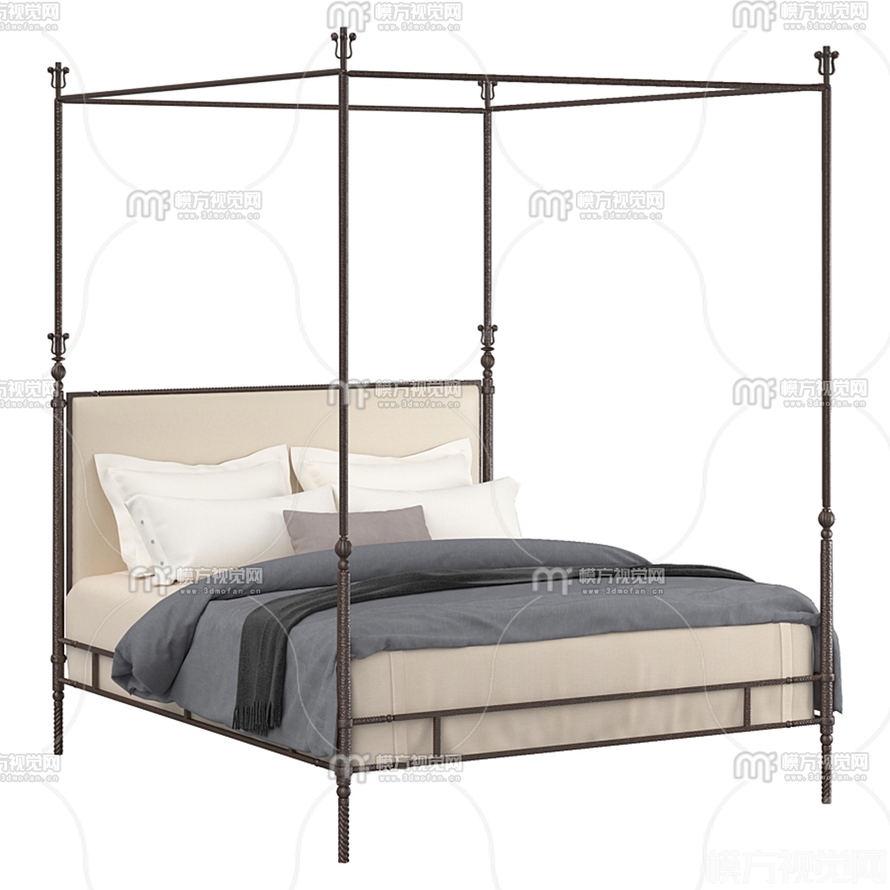 现代布艺双人床3D模型(ID:0020209)