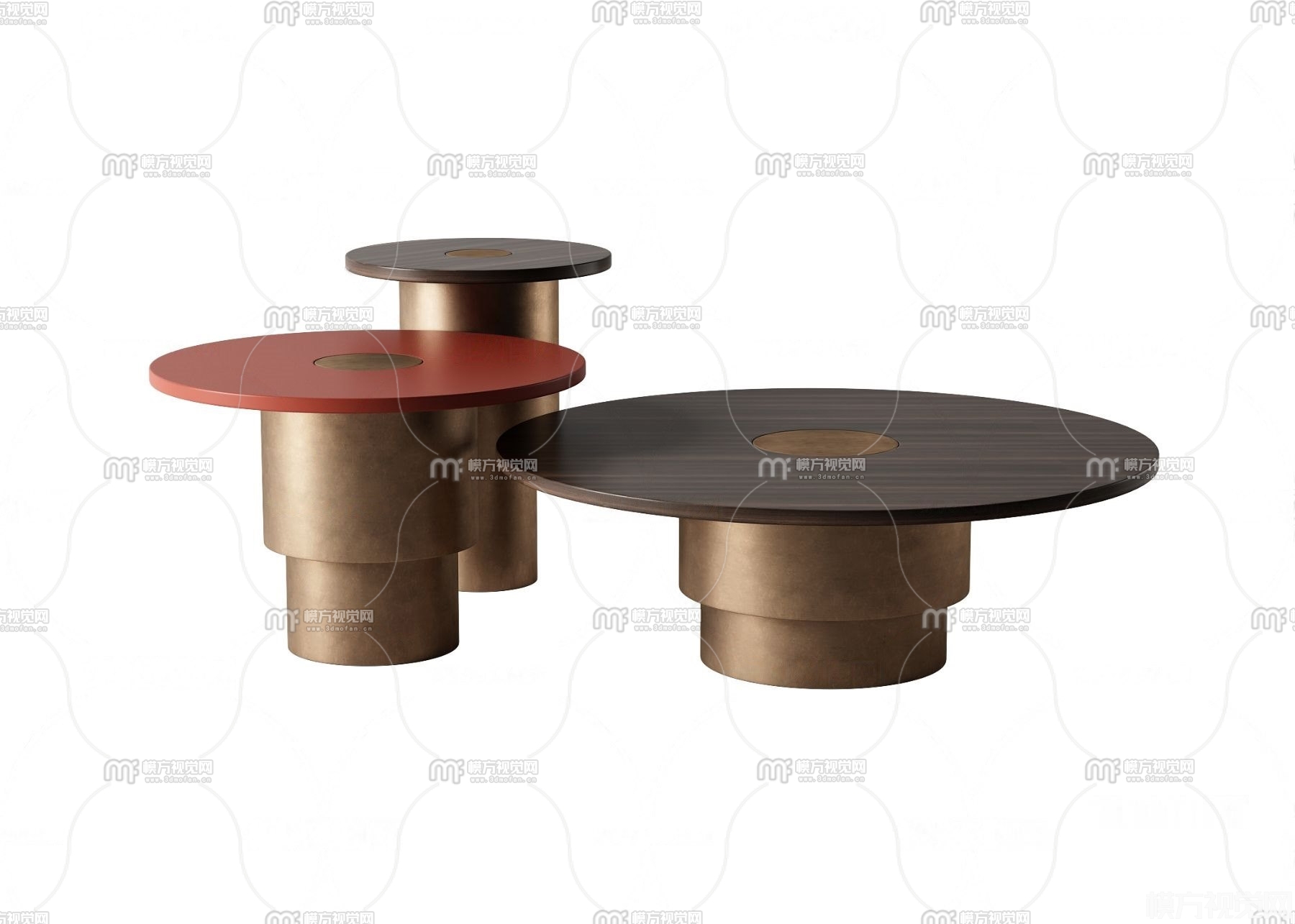 现代圆形茶几边几组合3D模型(ID:0020308)