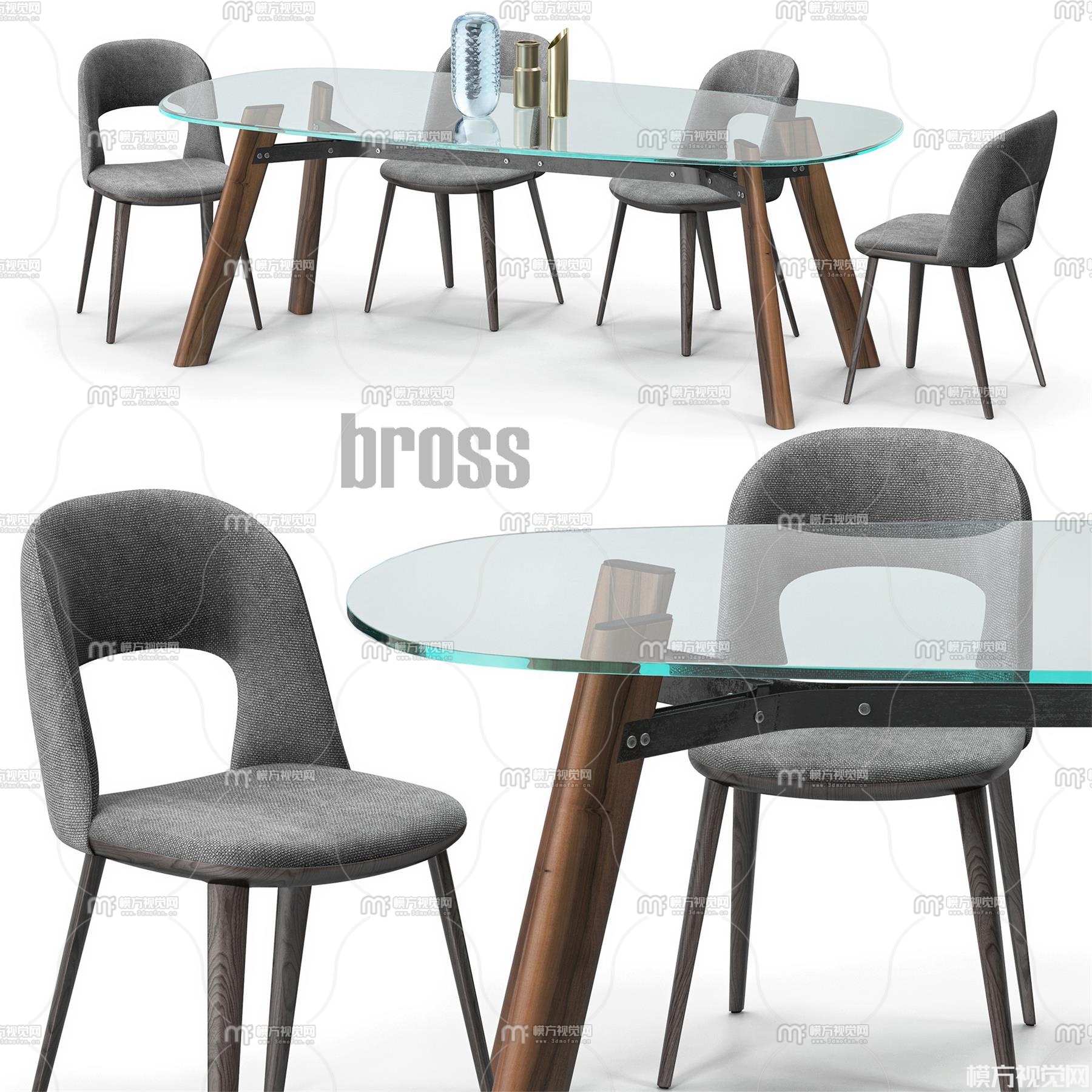 现代玻璃餐桌椅3D模型(ID:0020338)
