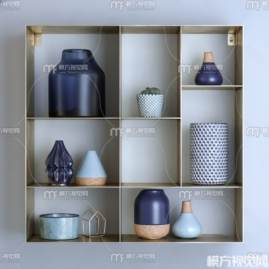 现代壁柜饰品摆件3D模型(ID:0002077)