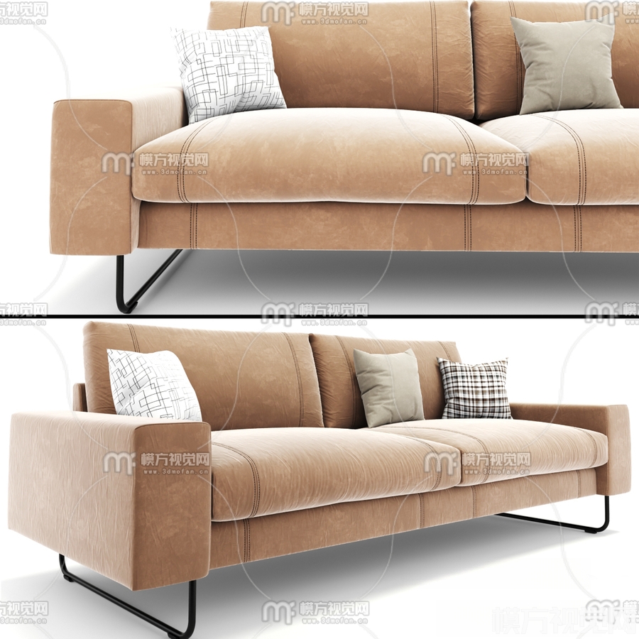 现代沙绒布多人沙发3D模型(ID:0020905)