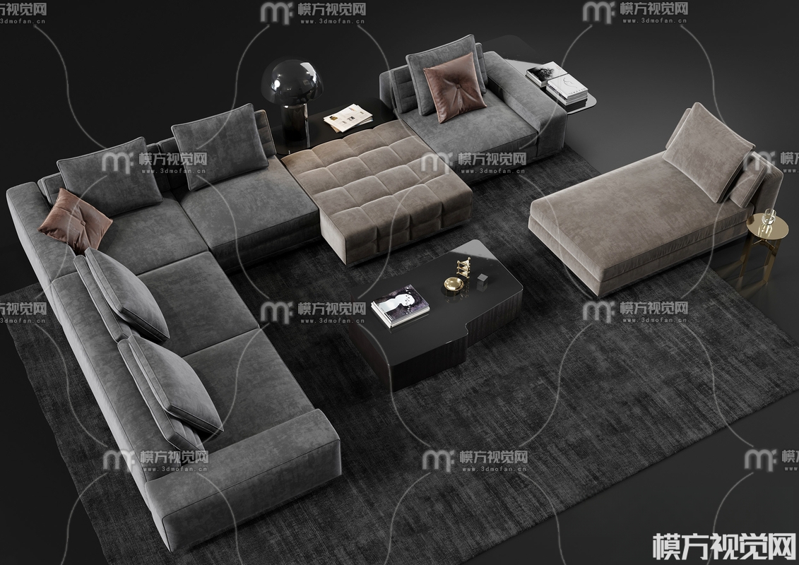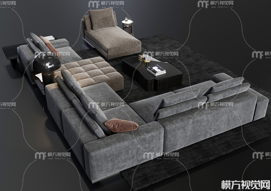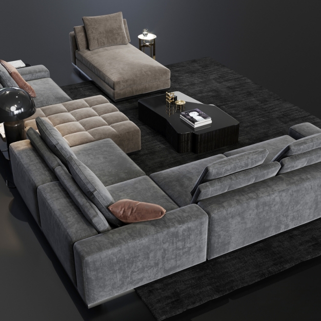 现代沙发茶几组合3D模型(ID:0020908)