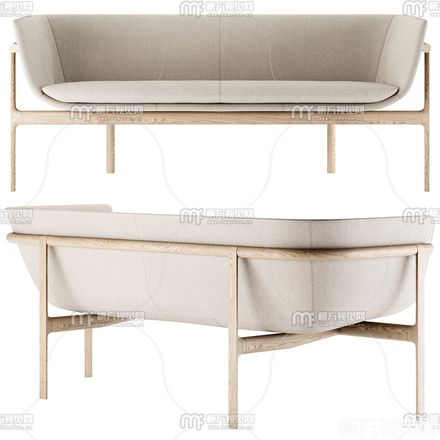 北欧布艺双人沙发3D模型(ID:0020911)