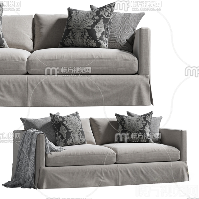 现代双人布艺沙发3D模型(ID:0020941)