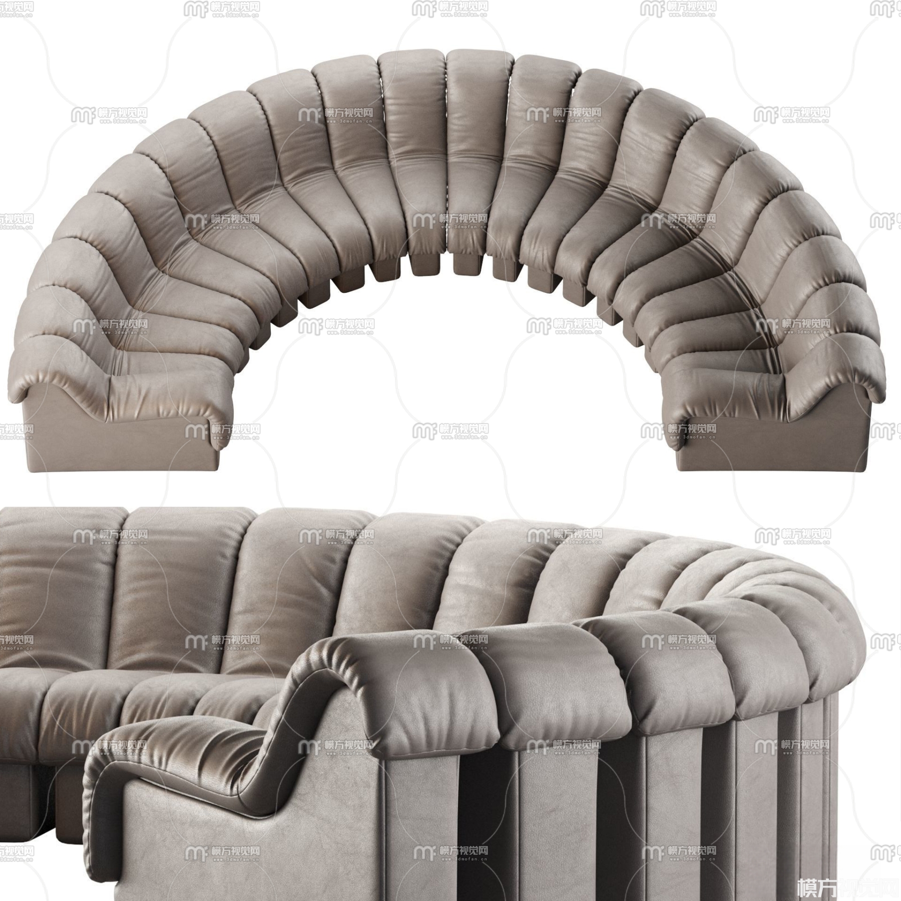 现代弧形皮革沙发3D模型(ID:0020952)