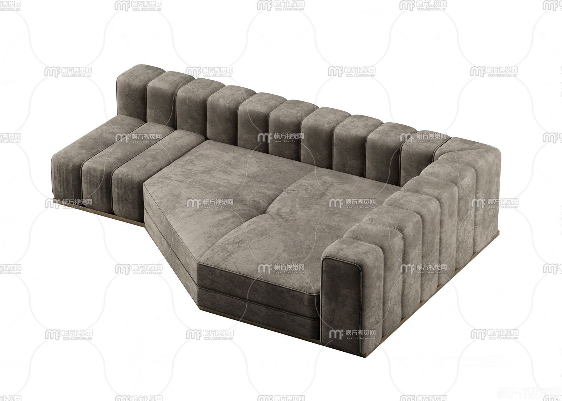 现代绒布多人沙发3D模型(ID:0021068)