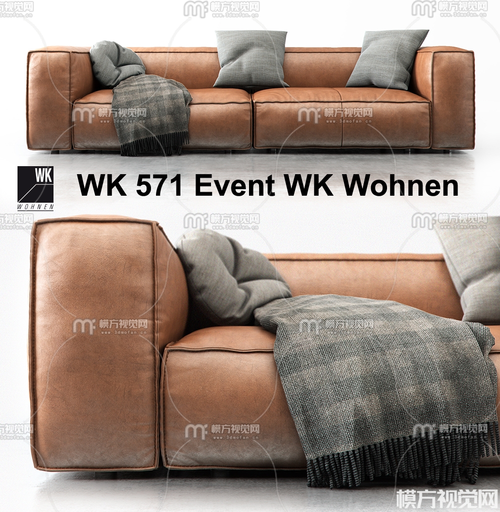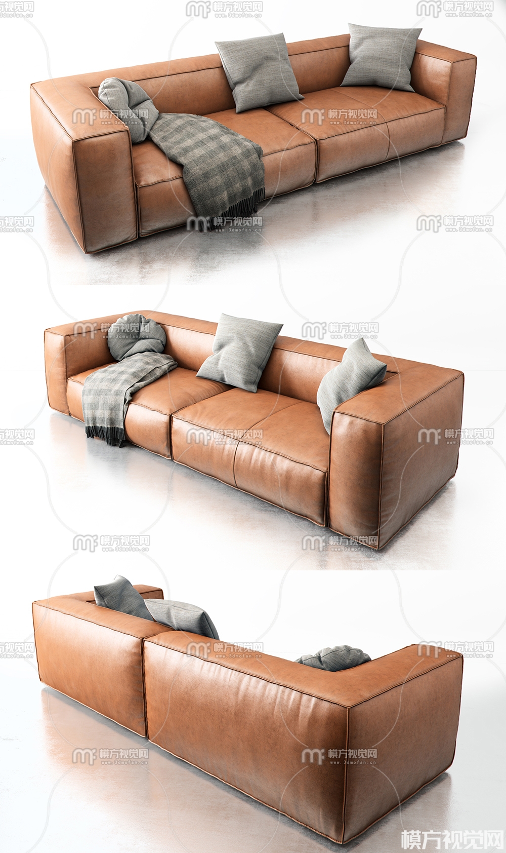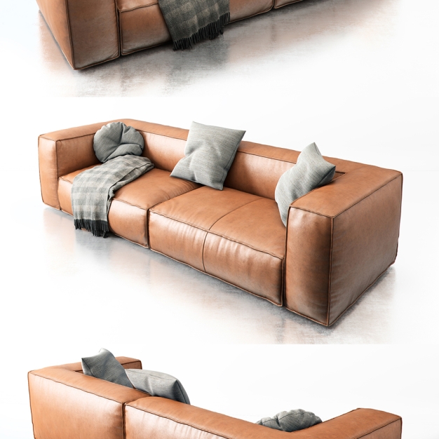 现代皮革双人沙发3D模型(ID:0021075)
