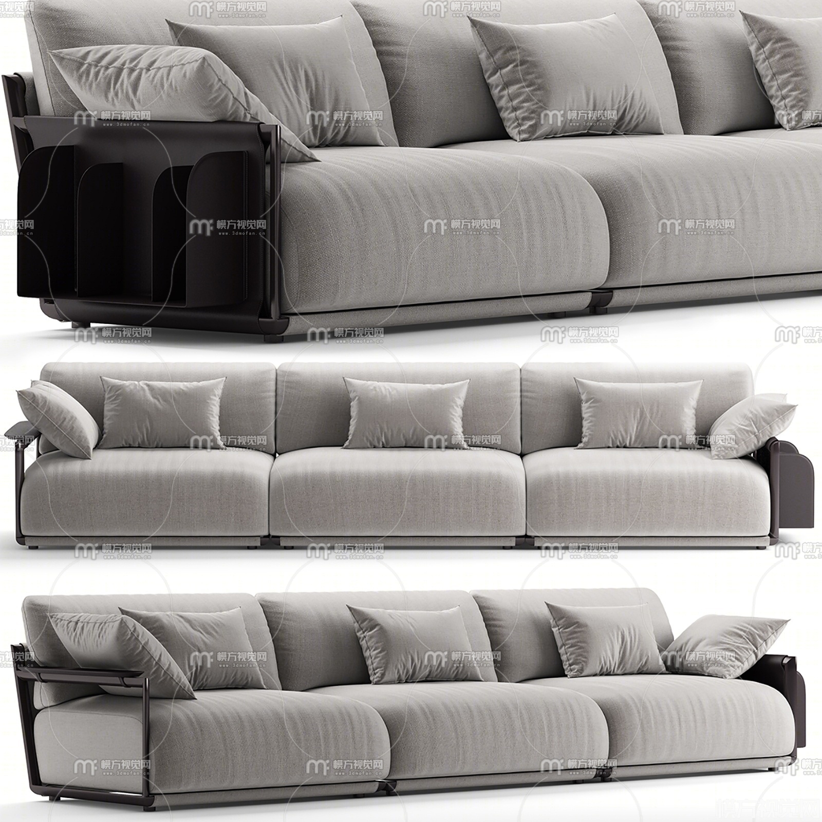 现代三人沙发组合3D模型(ID:0021089)