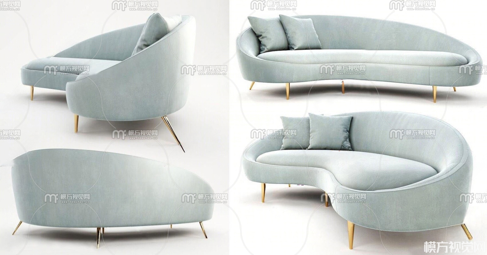 现代绒布弧形多人沙发3D模型(ID:0021225)