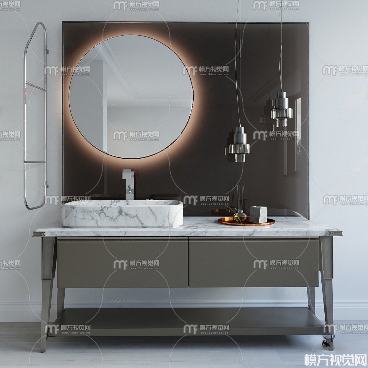 现代 洗手台 浴室镜 浴室柜3D模型(ID:0021229)