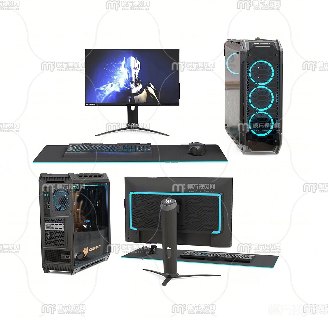 电脑 主机 键盘 显示屏3D模型(ID:0021257)