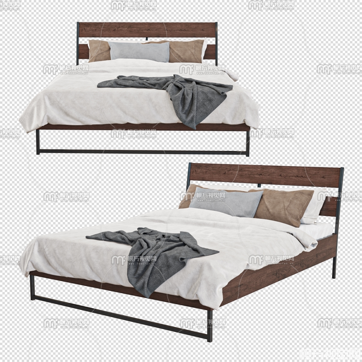 北欧双人床3D模型(ID:0021360)