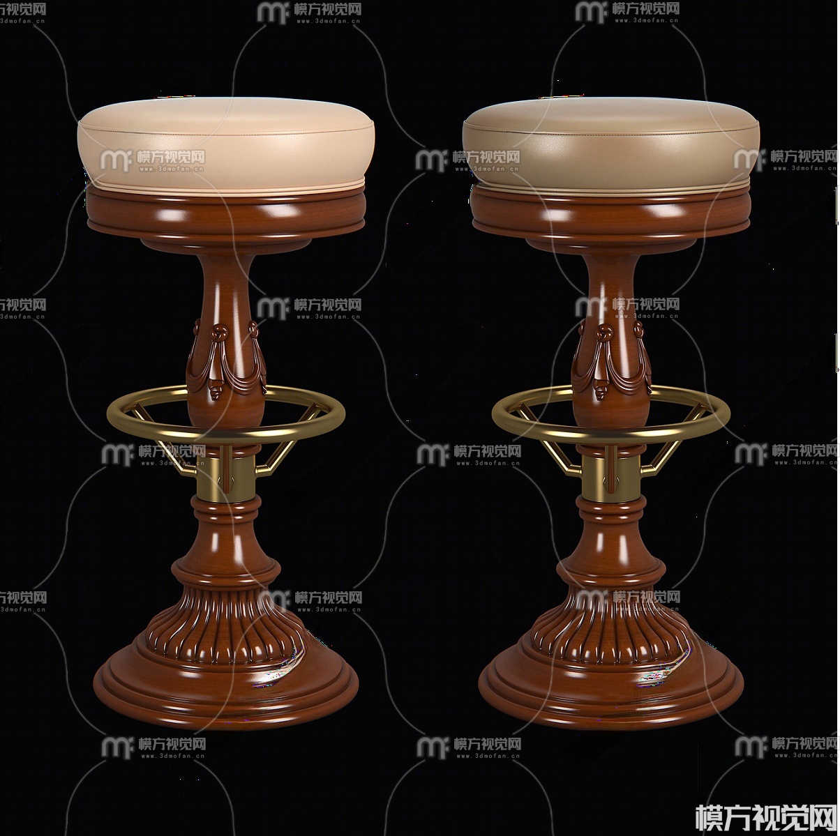 美式吧凳3D模型(ID:0021372)