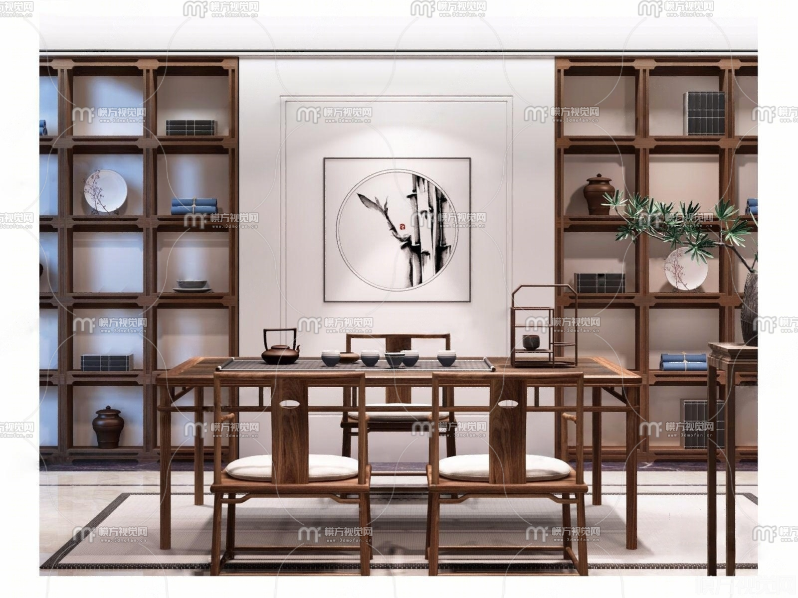 新中式茶桌椅 装饰柜3D模型(ID:0021477)