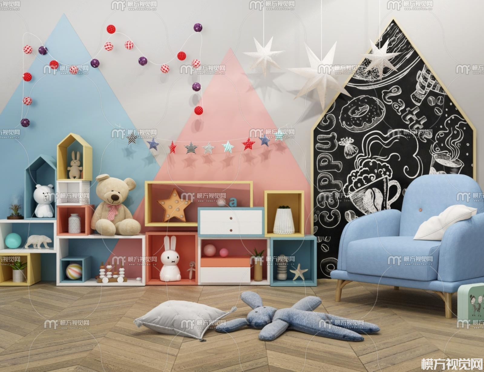 儿童装饰柜 休闲椅3D模型(ID:0021506)