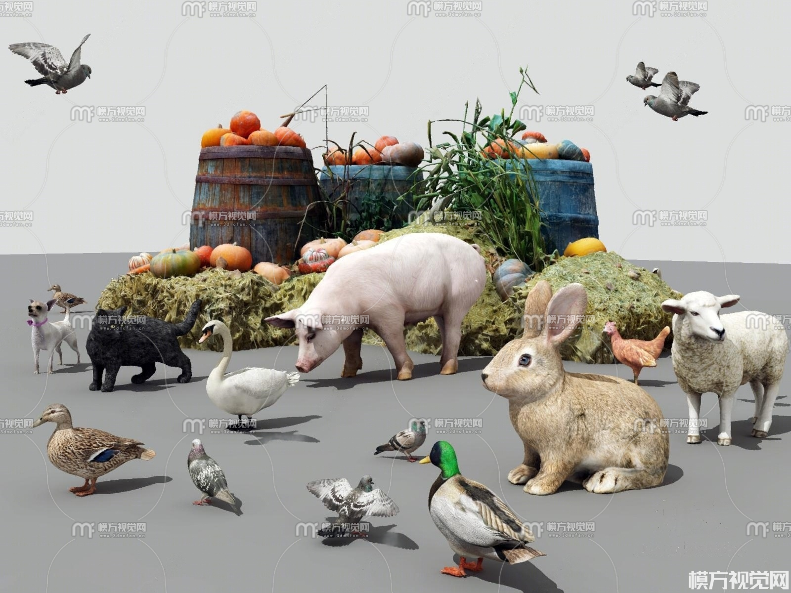 猪 猫 兔子 鸭子 家畜3D模型(ID:0021507)