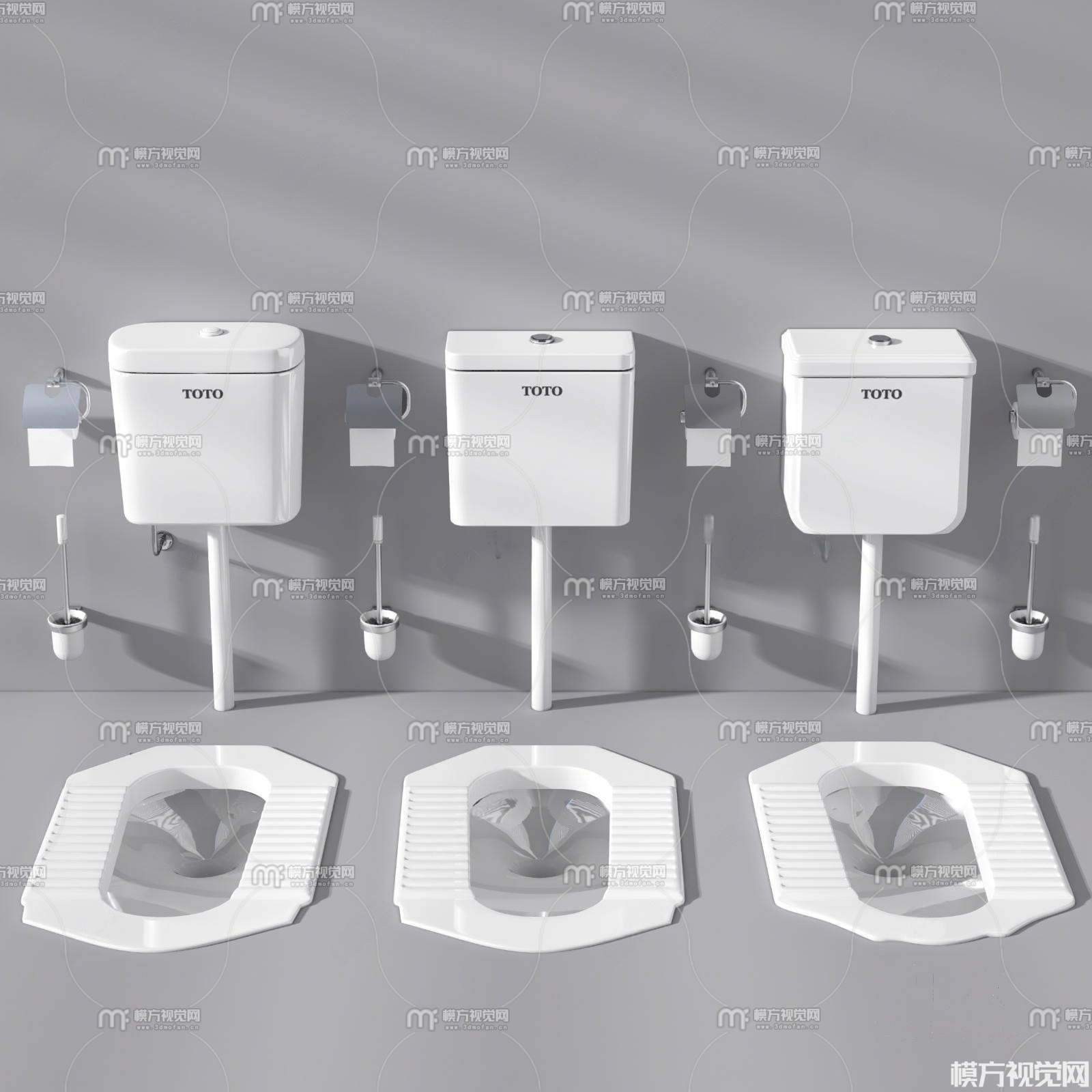 现代蹲便器冲水箱组合3D模型(ID:0021527)