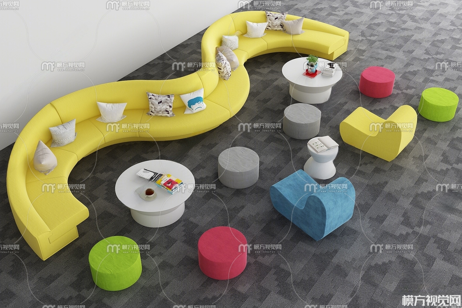 现代布艺休闲创意沙发组合3D模型(ID:0002160)
