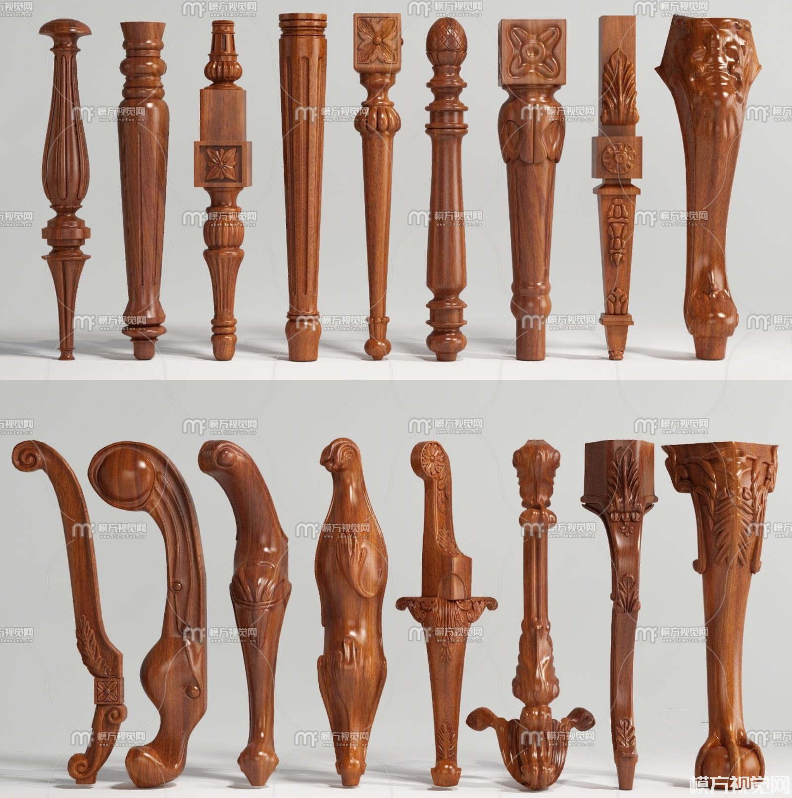 美式实木楼梯栏杆3D模型(ID:0022034)