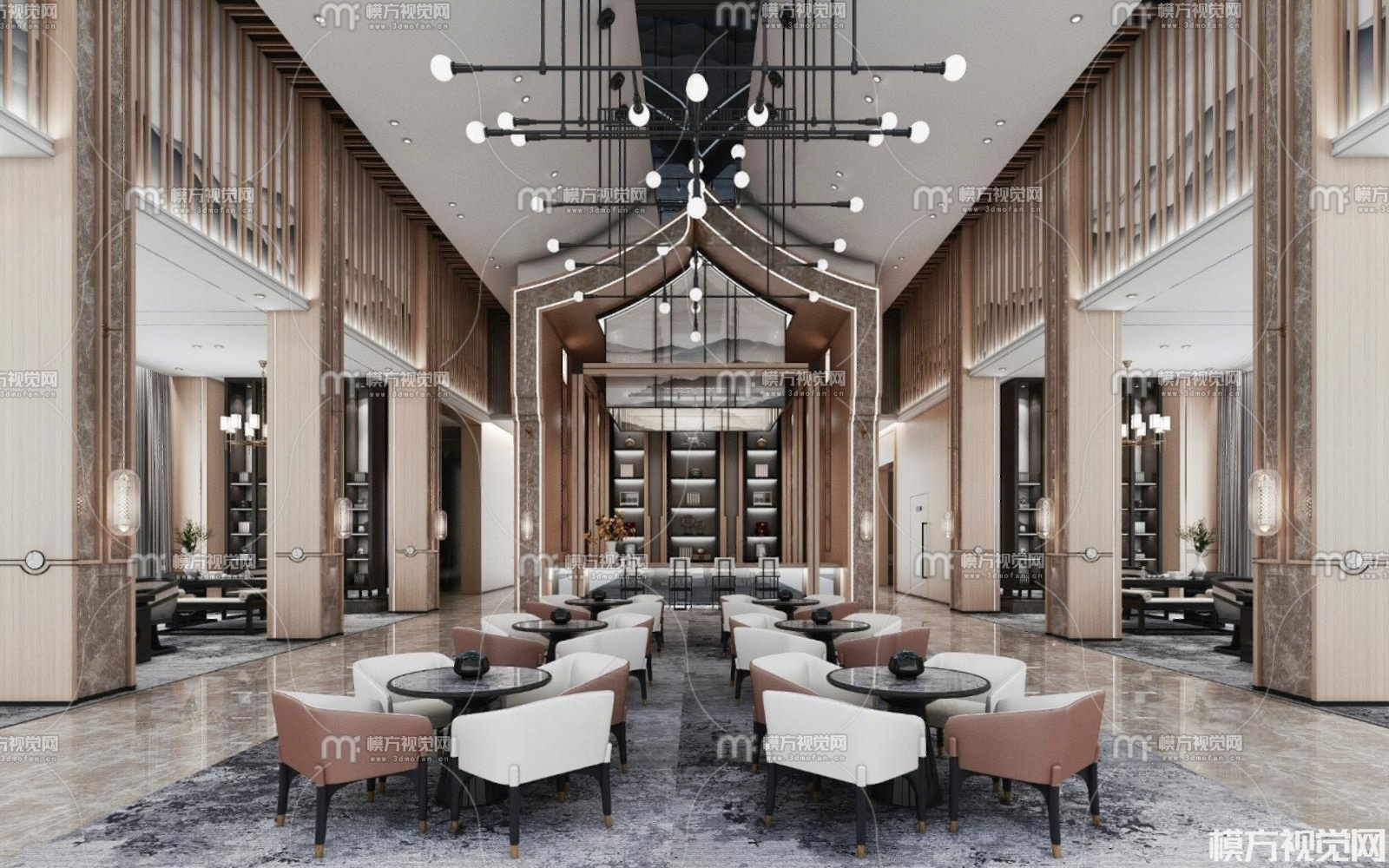 新中式售楼处大厅洽谈区3D模型(ID:0022066)