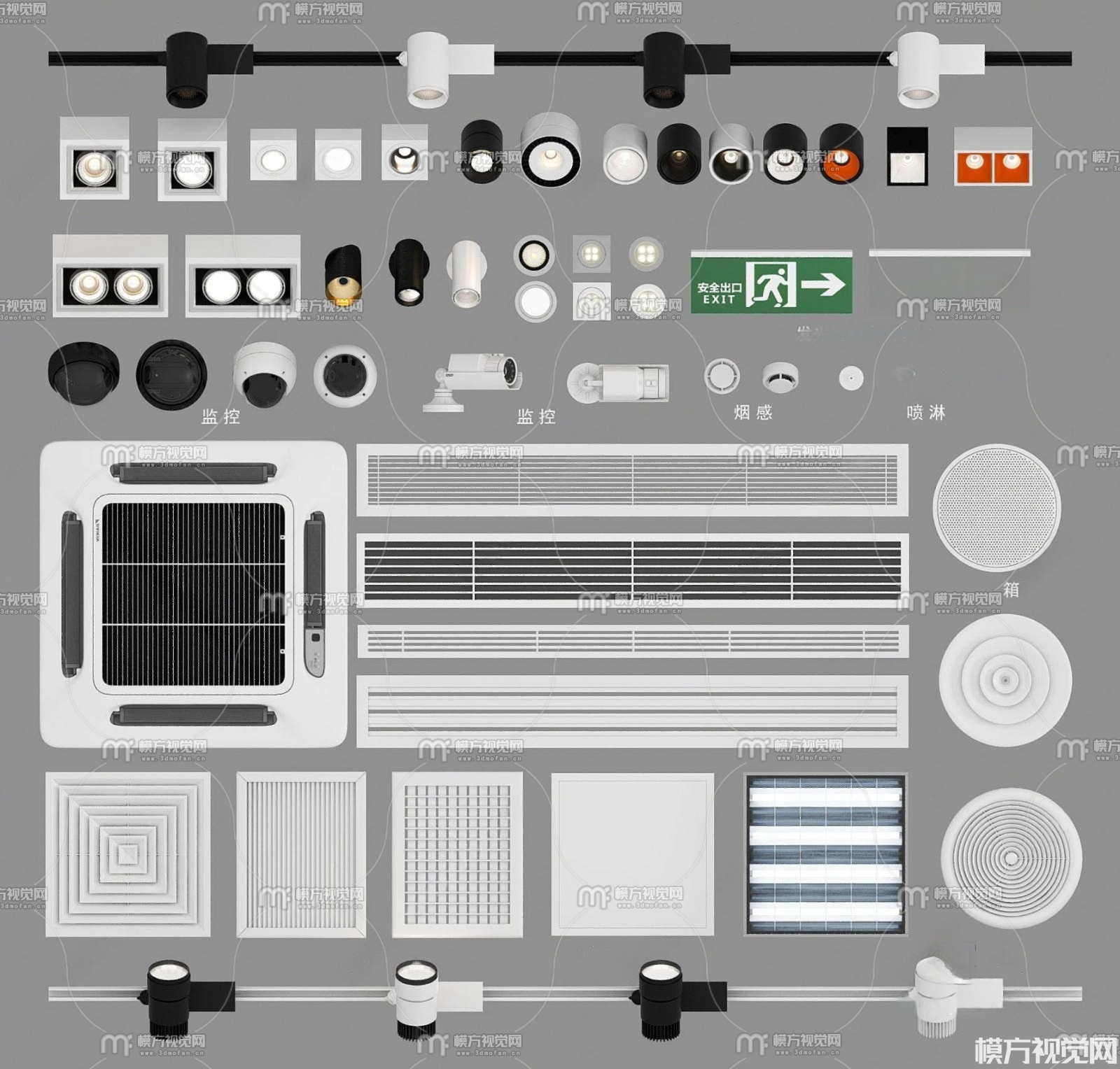 筒灯 射灯 轨道灯 空调排风口3D模型(ID:0022068)
