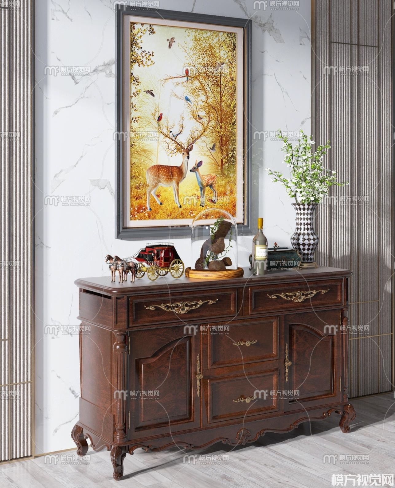 美式玄关柜3D模型(ID:0022100)