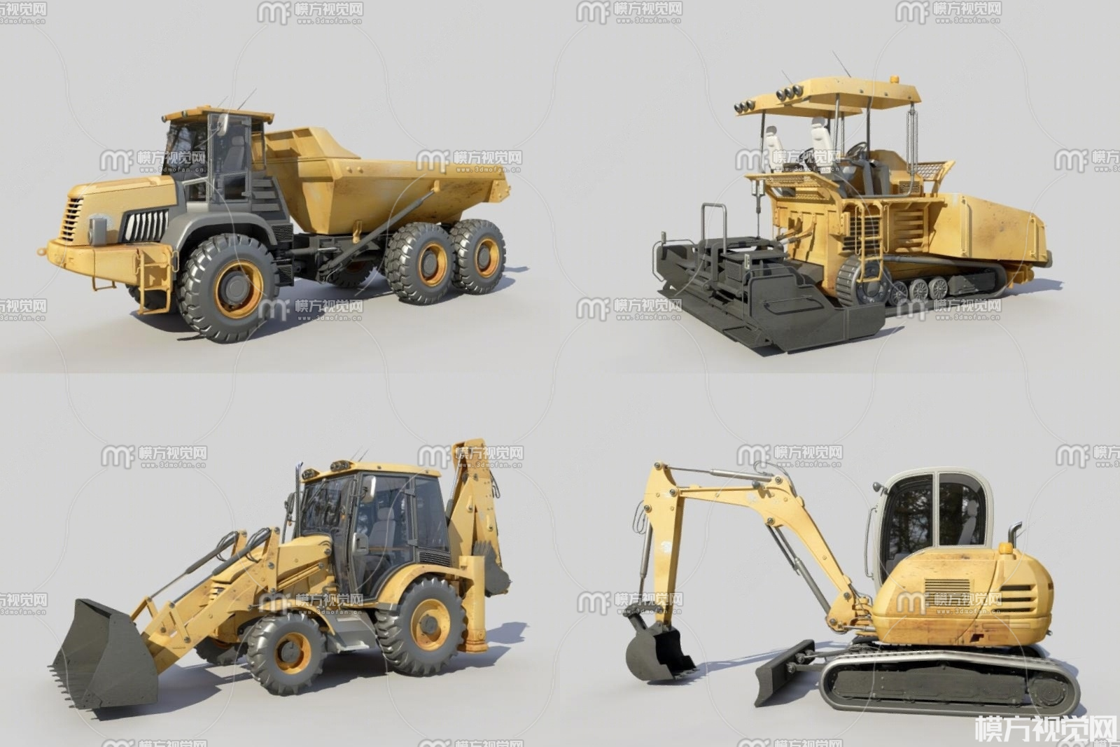 货车 摊铺机 铲车 挖掘机3D模型(ID:0022120)