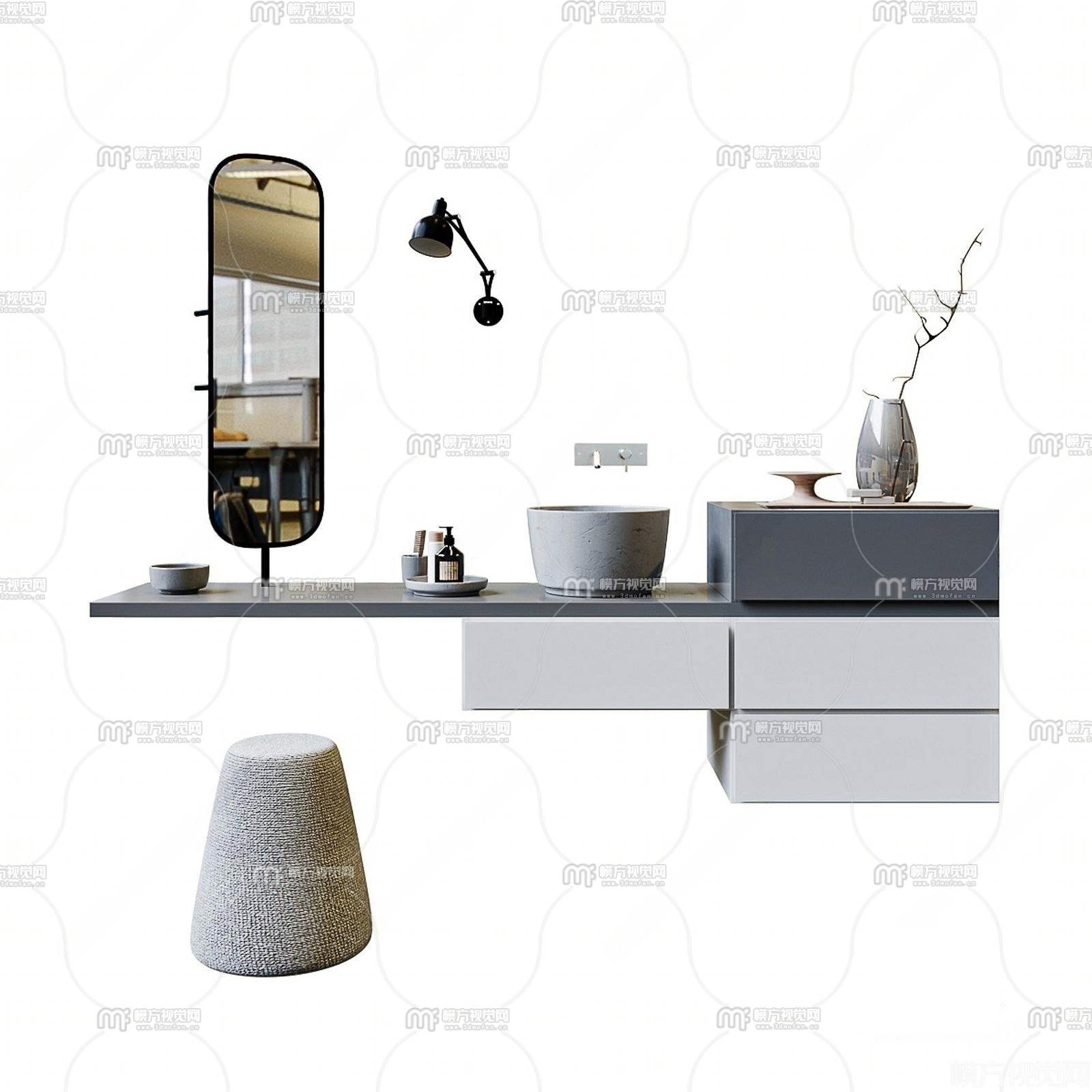现代洗手台 浴室柜3D模型(ID:0022279)