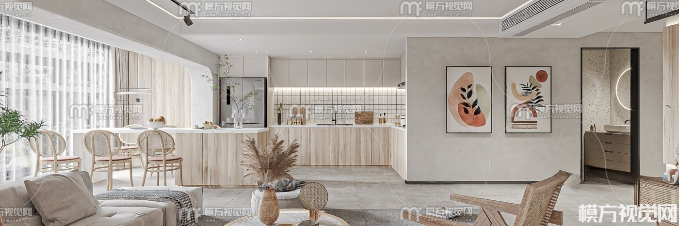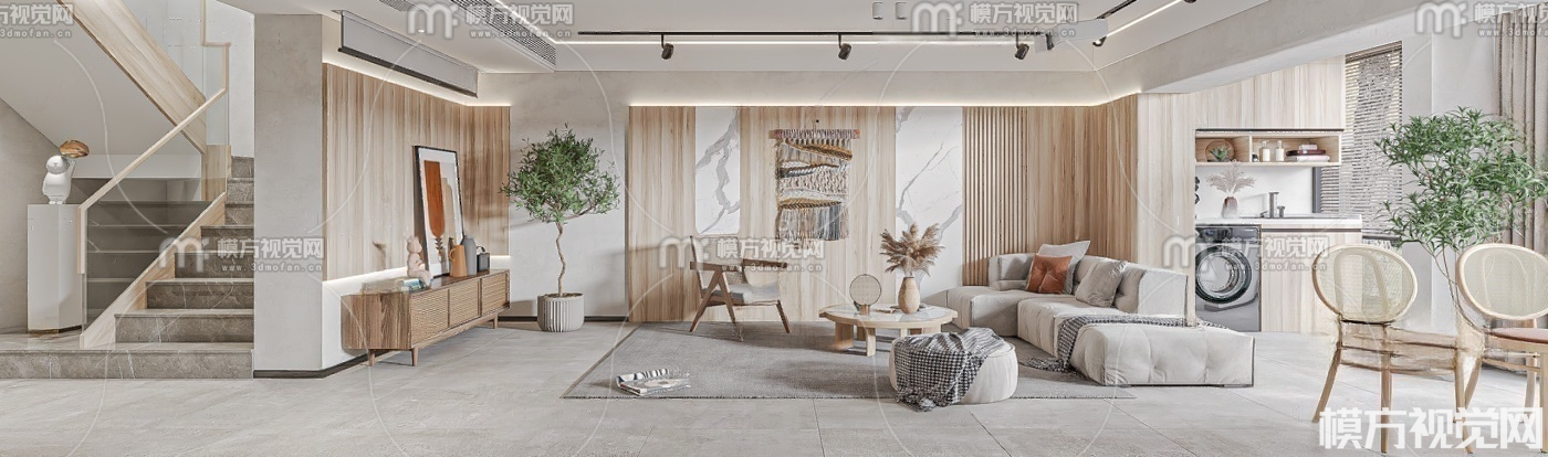 北欧复式客厅餐厅3D模型(ID:0022331)