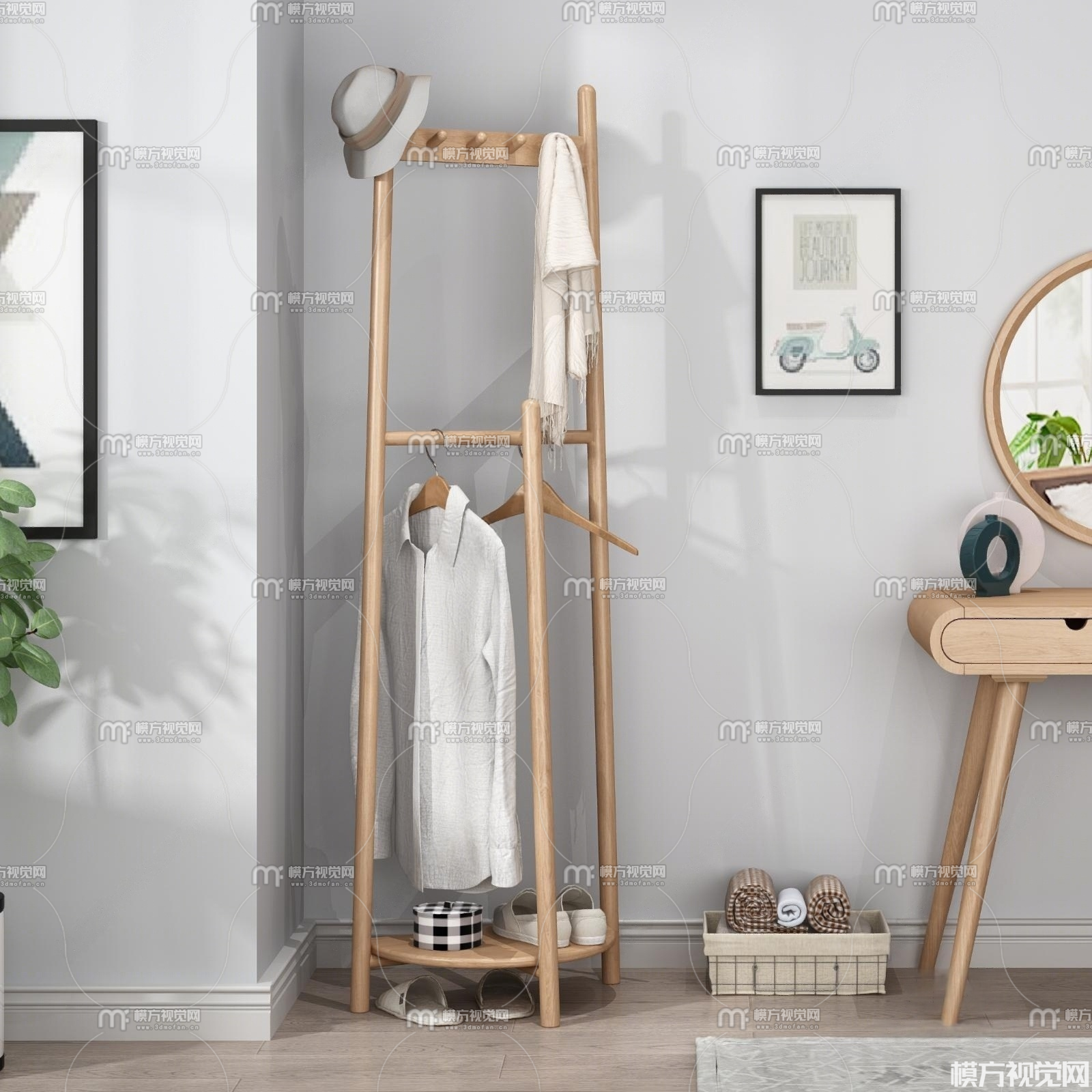 原木衣架3D模型(ID:0022416)