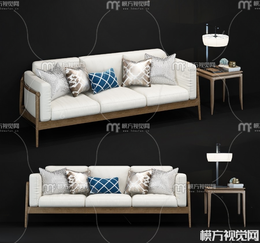 新中式多人沙发3D模型(ID:0002244)