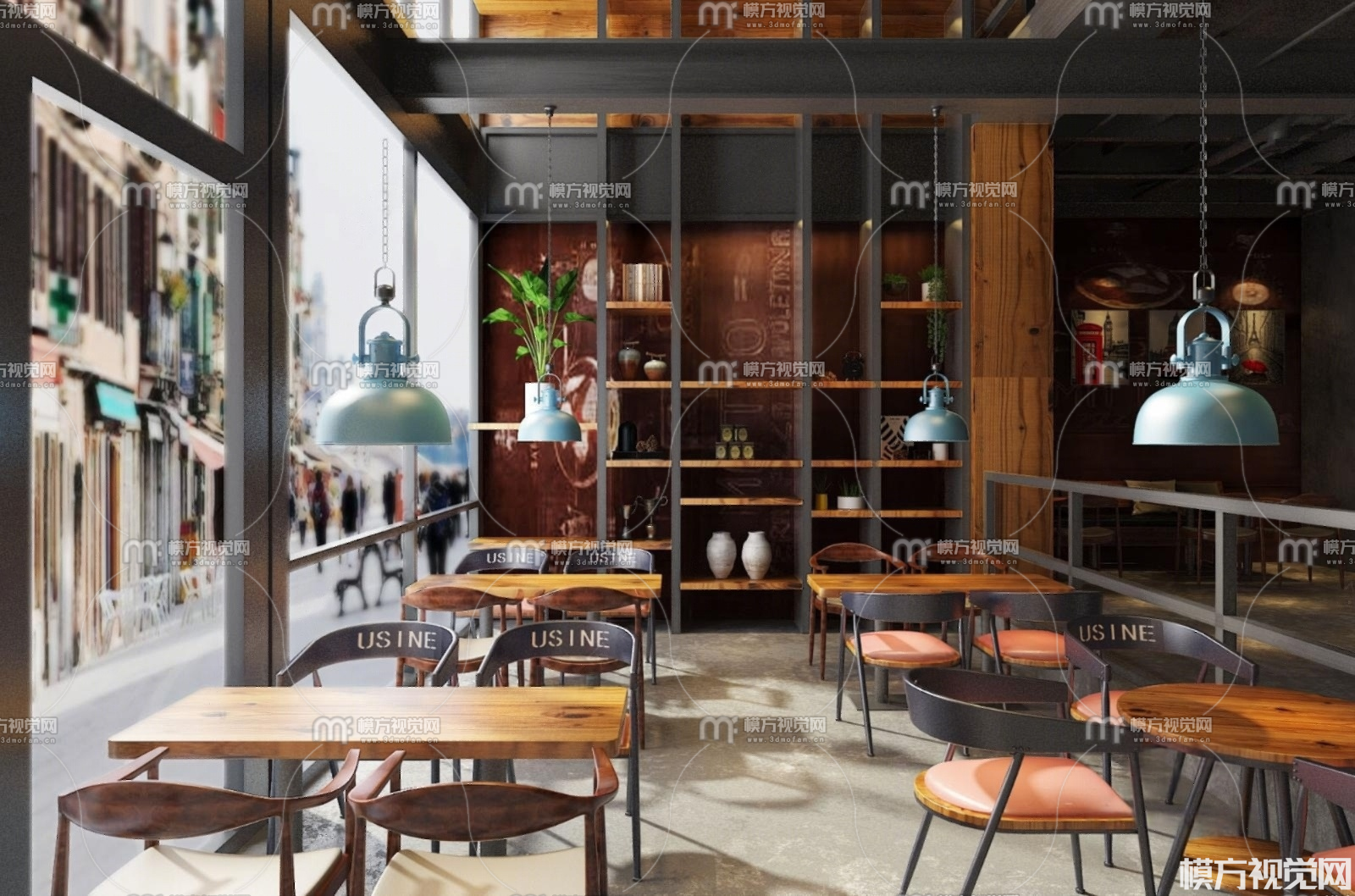 工业风咖啡厅3D模型(ID:0022468)