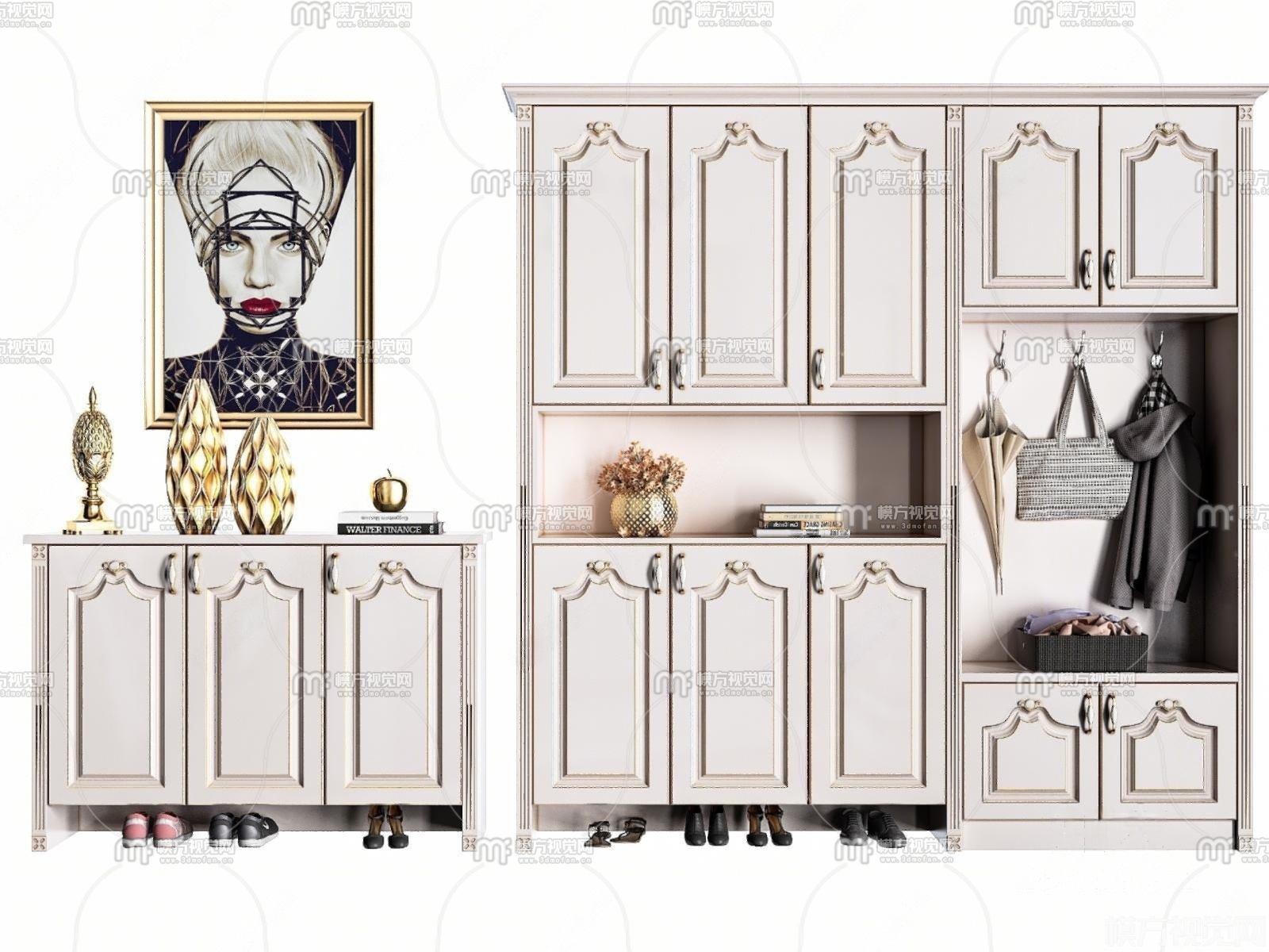 简欧多功能实木鞋柜组合3D模型(ID:0022544)