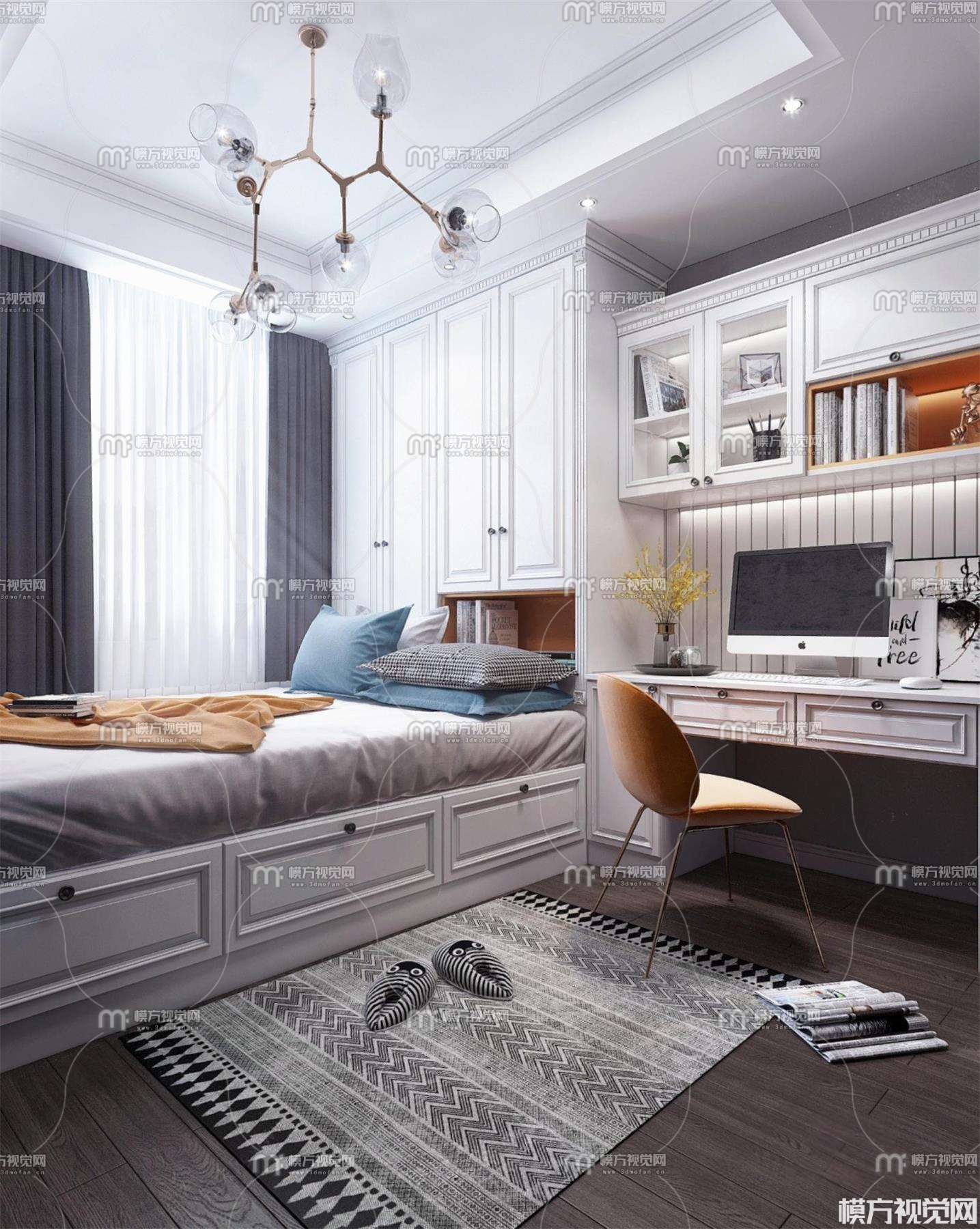 简欧风格榻榻米卧室3D模型(ID:0022547)