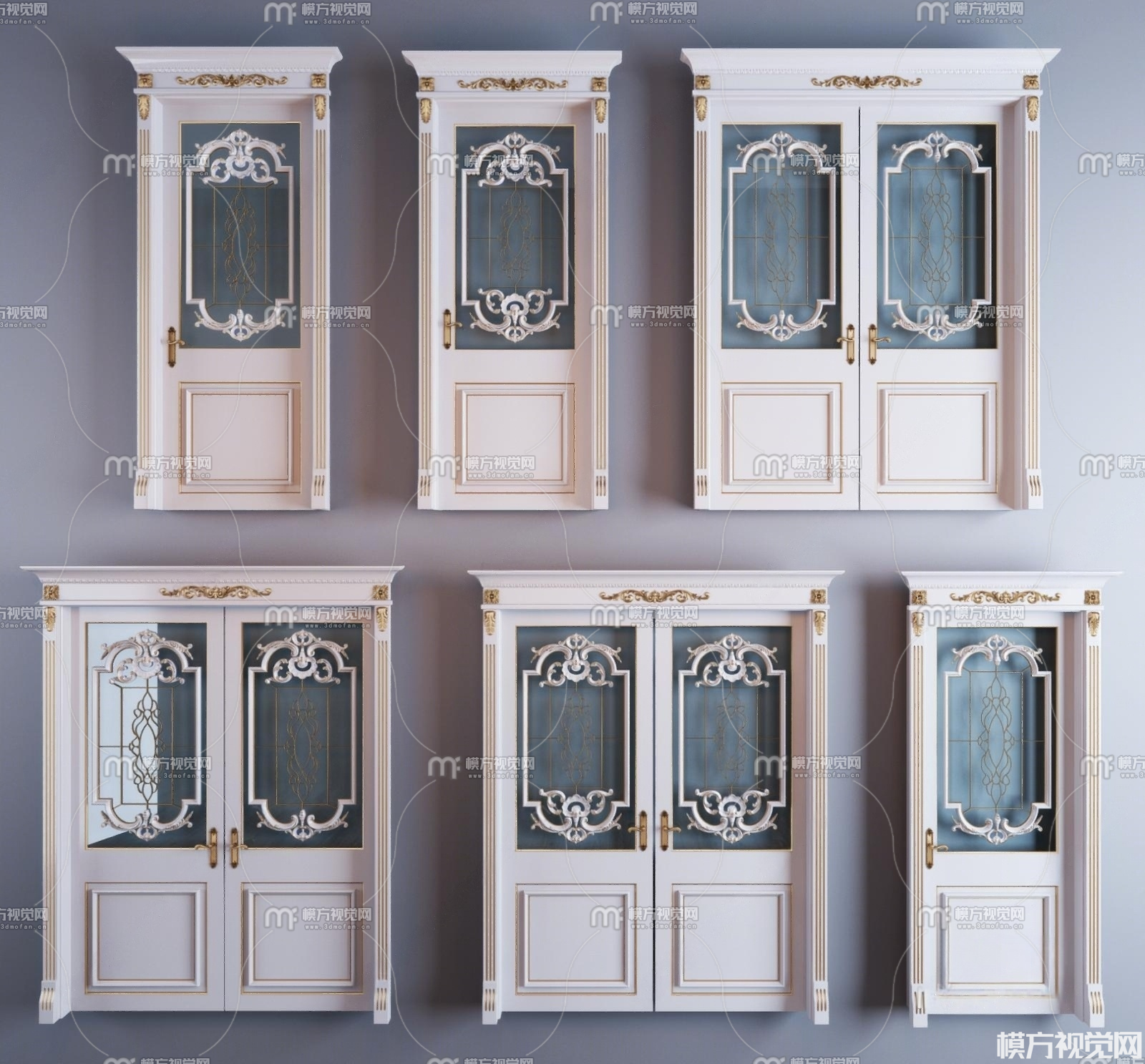 简欧描金雕花烤漆玻璃门3D模型(ID:0022567)