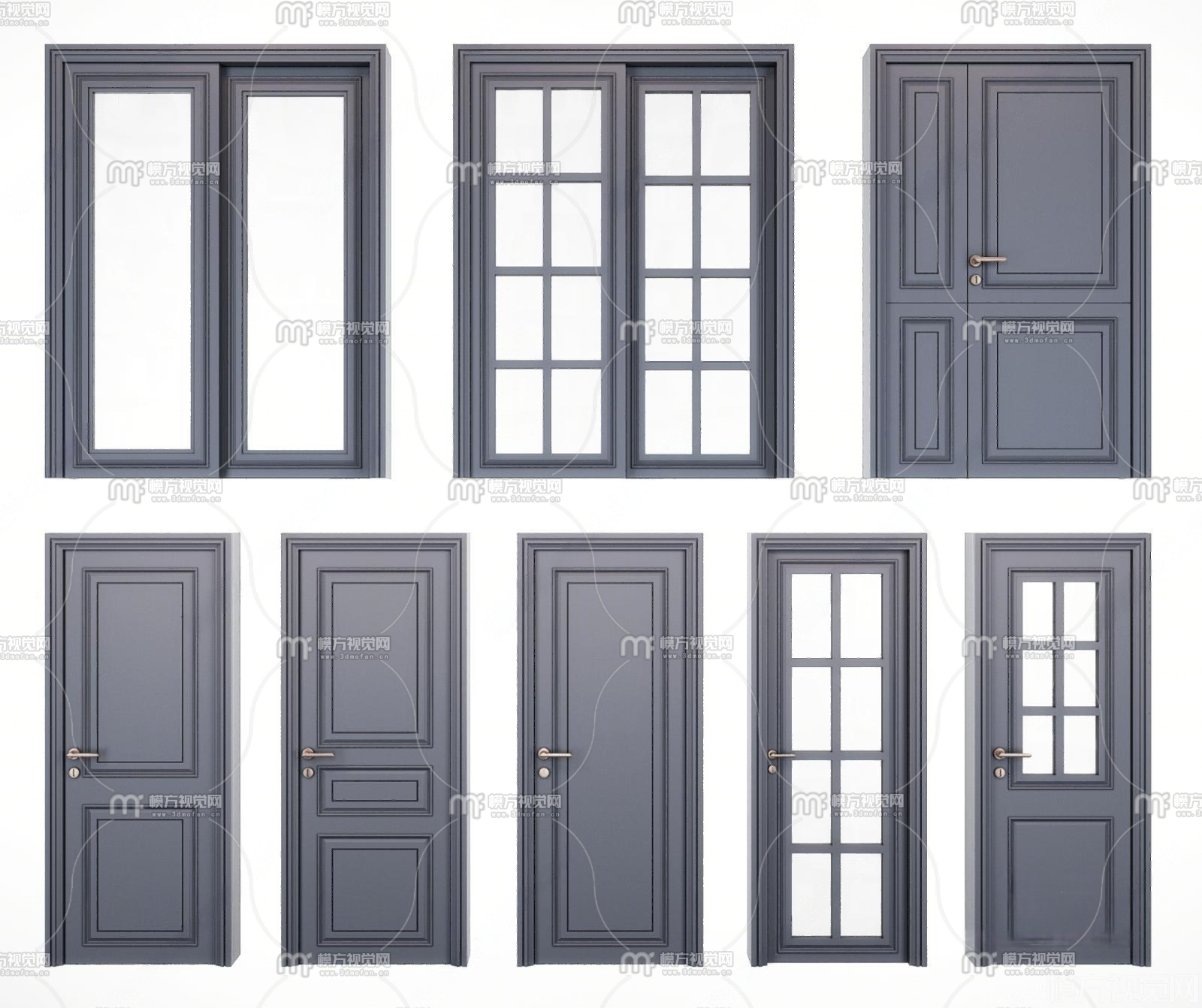 美式推拉门 单开门 双开门组合3D模型(ID:0022626)