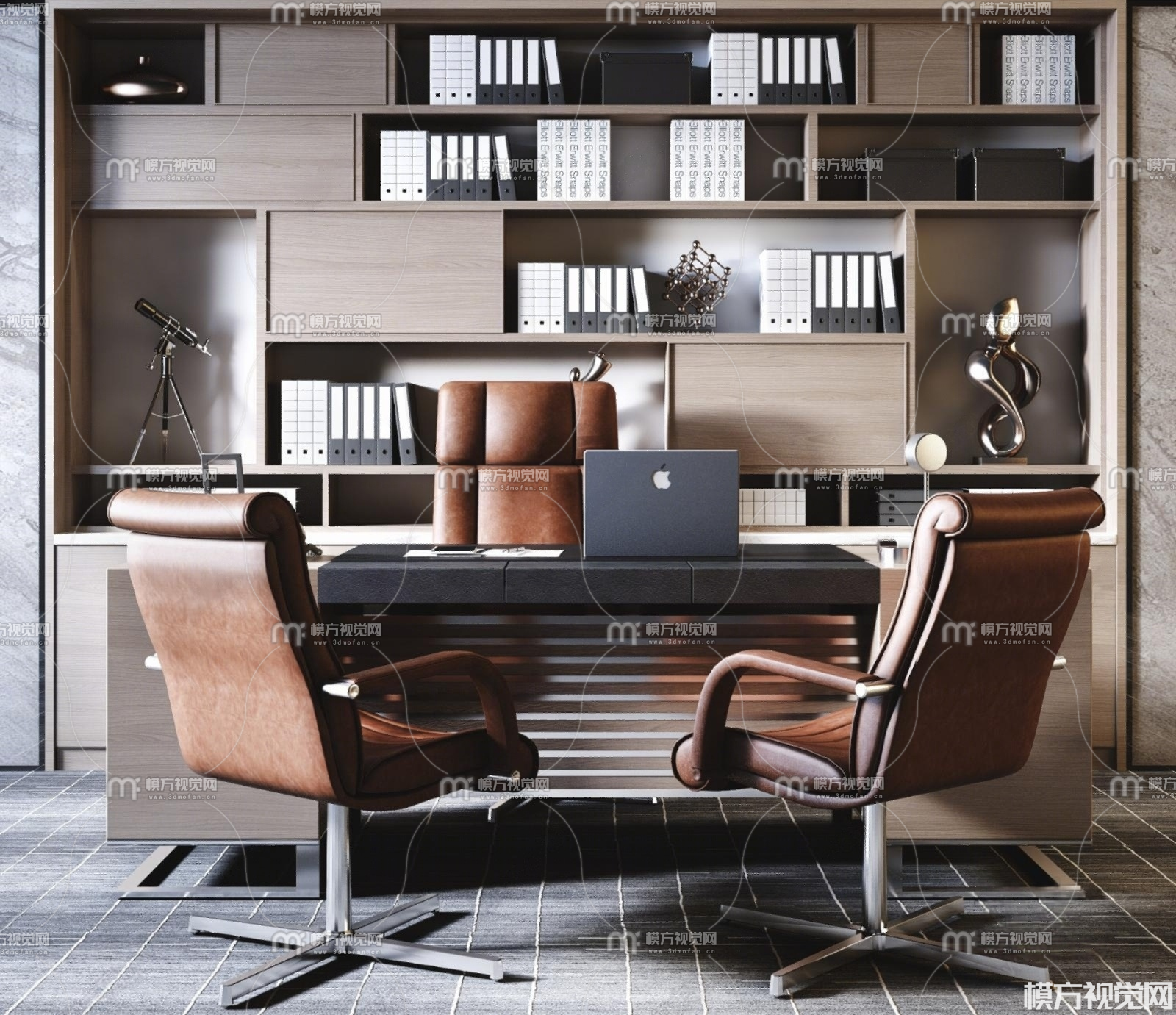 现代办公桌椅 书柜组合3D模型(ID:0022751)