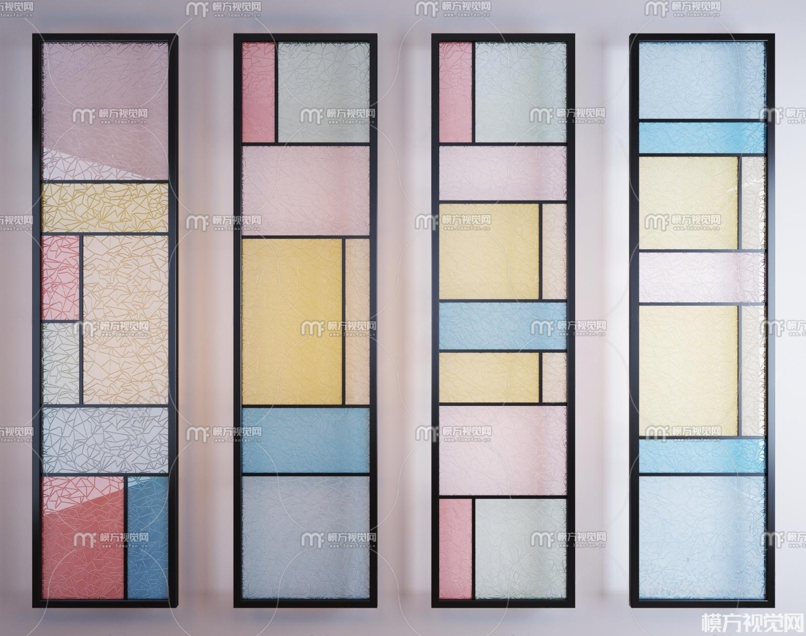 现代彩色冰裂玻璃隔断组合3D模型(ID:0022839)