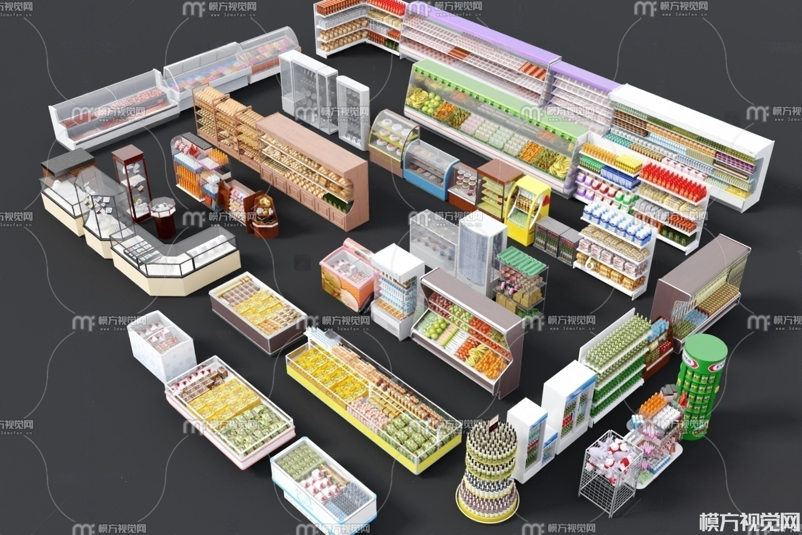 超市货柜 货架 生鲜柜3D模型(ID:0022876)