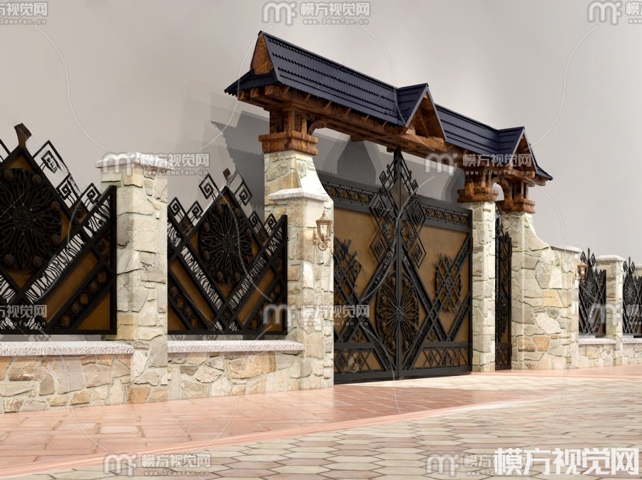 现代铁艺大门3D模型(ID:0002288)