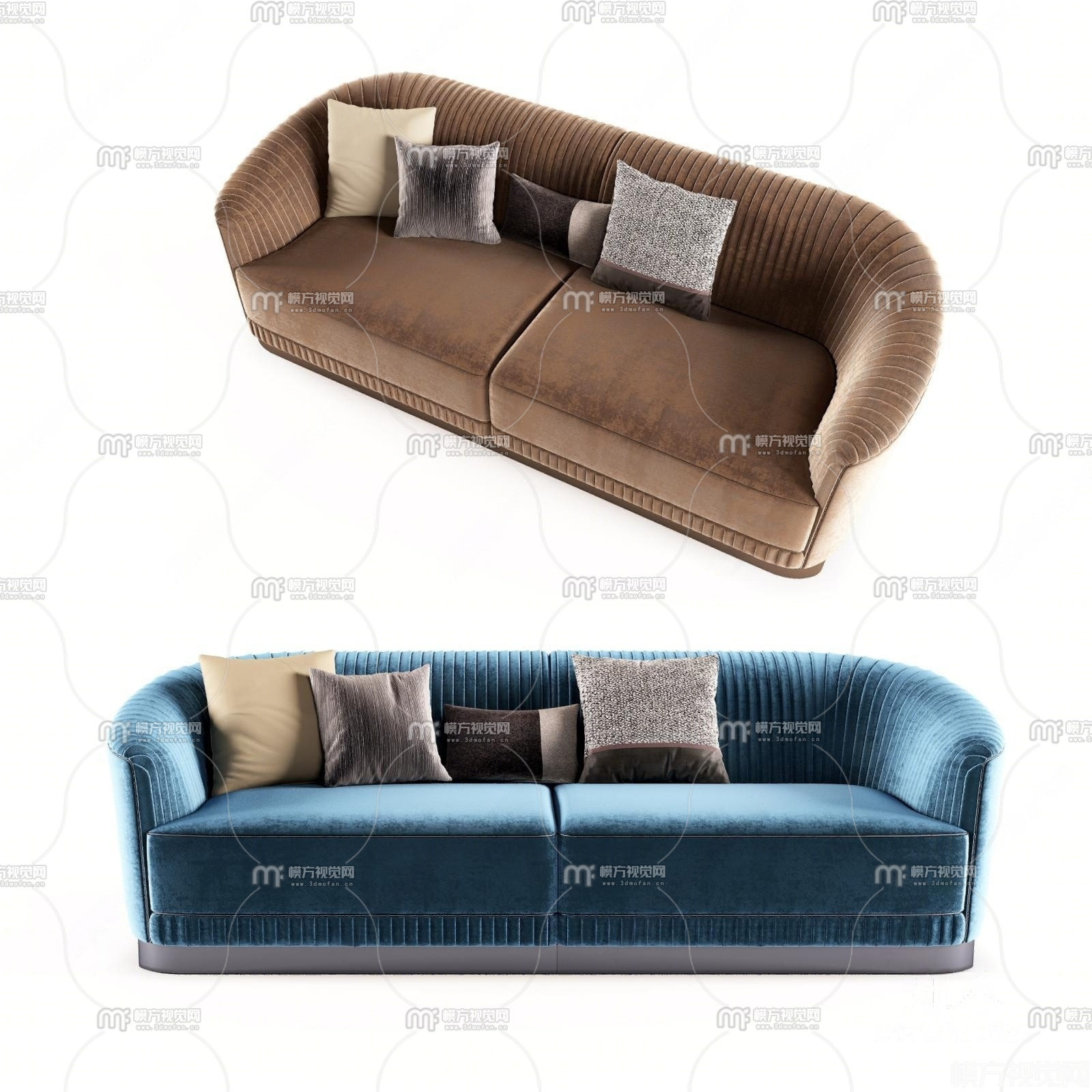 现代低奢绒布沙发3D模型(ID:0022978)
