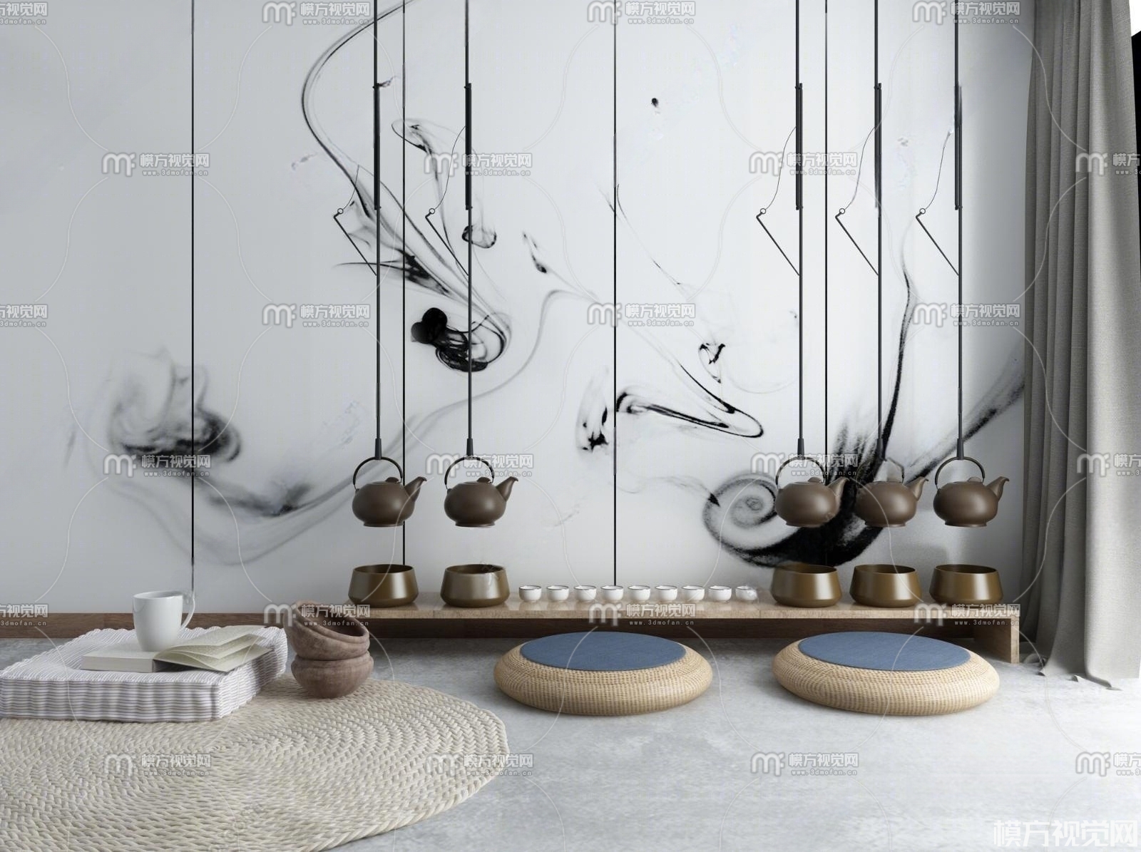新中式茶桌 坐垫3D模型(ID:0002303)