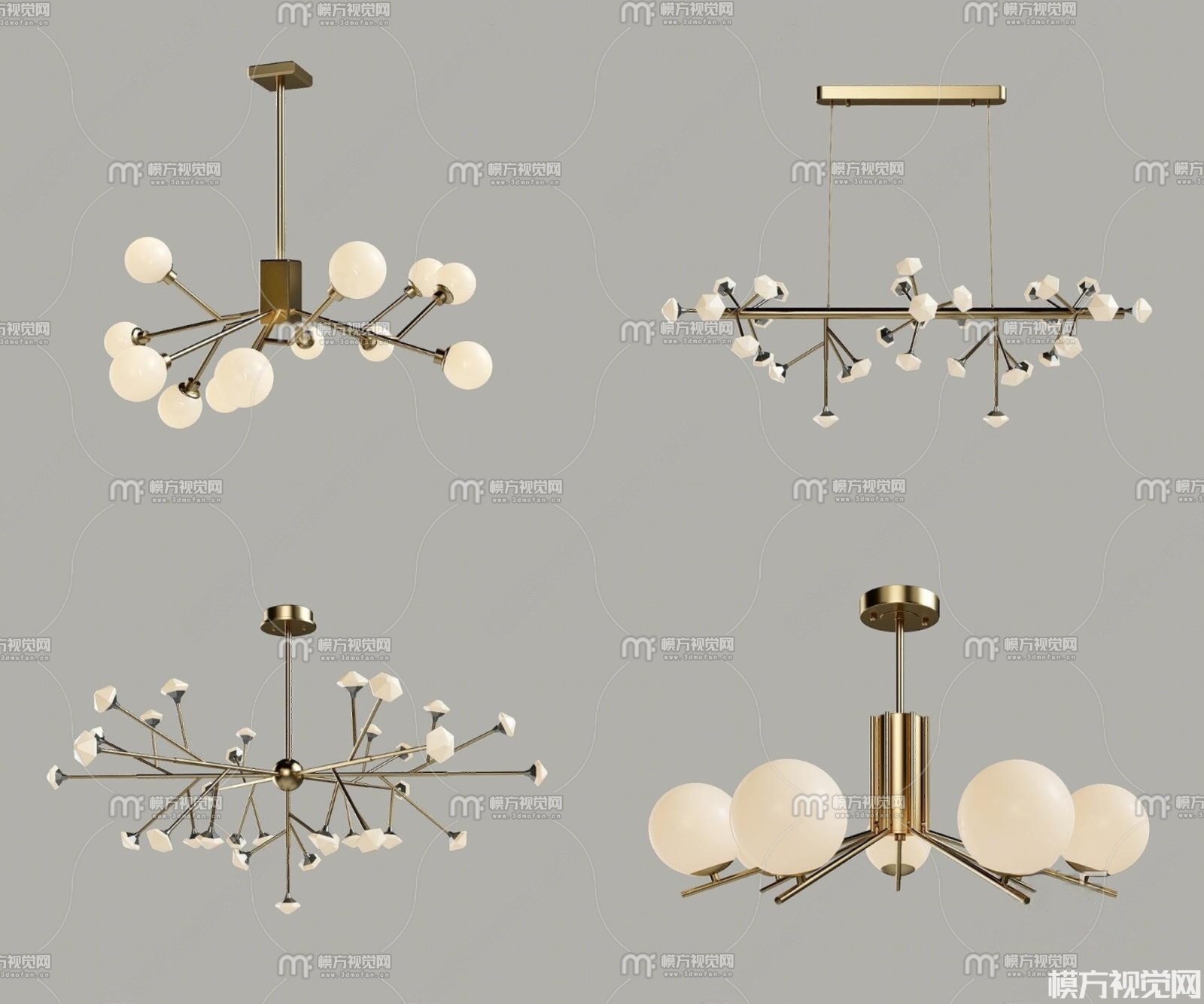 现代轻奢吊灯组合3D模型(ID:0023032)