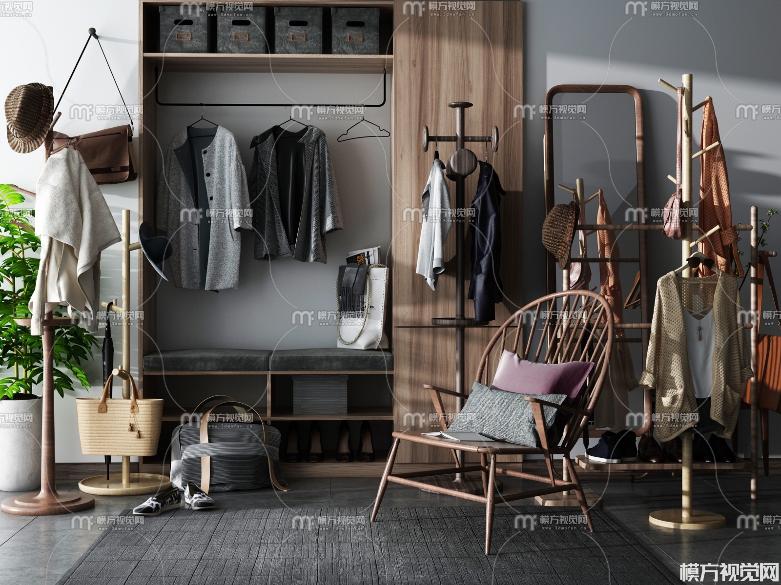 现代衣柜 衣架组合3D模型(ID:0002312)