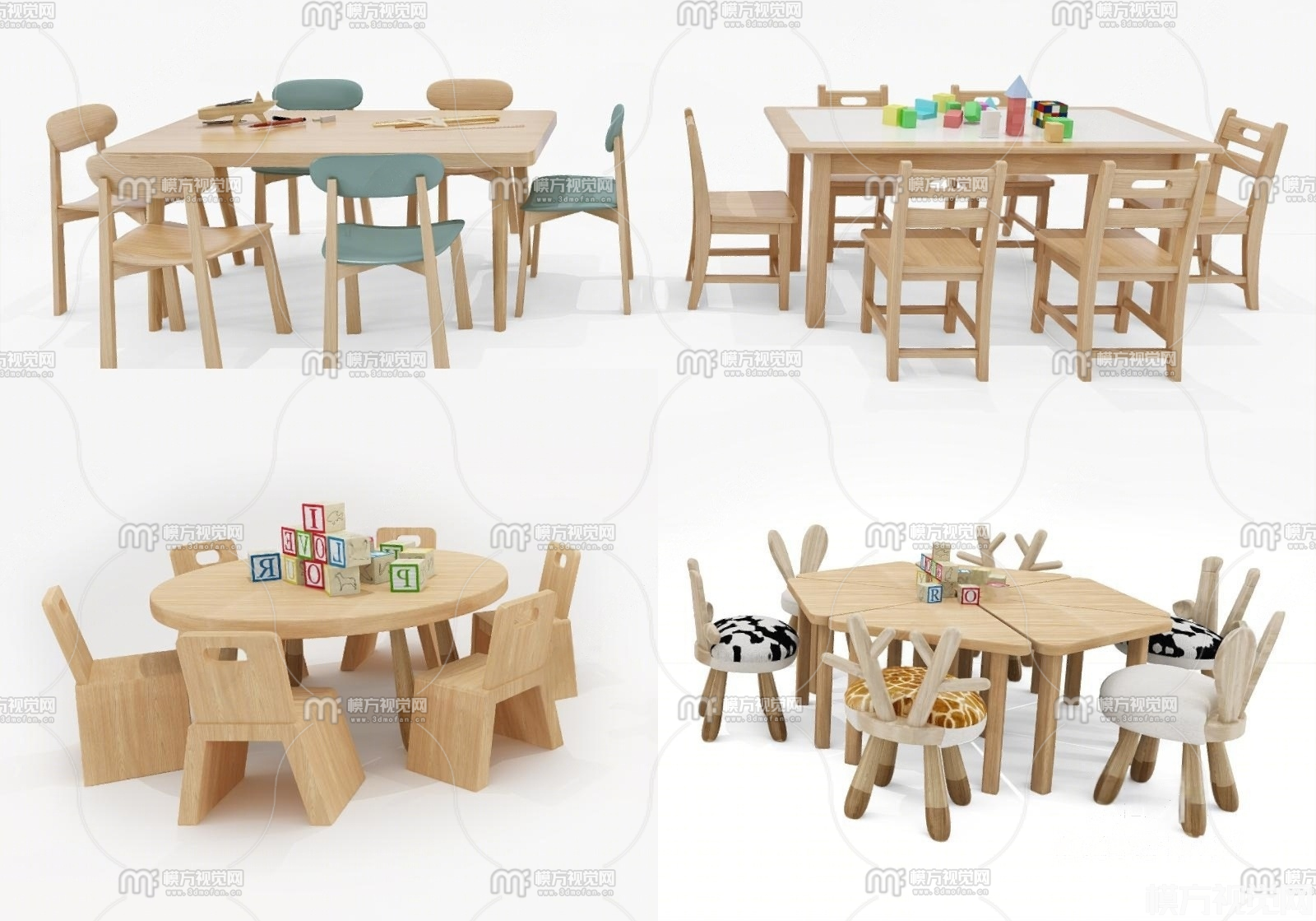 儿童桌椅组合3D模型(ID:0023134)