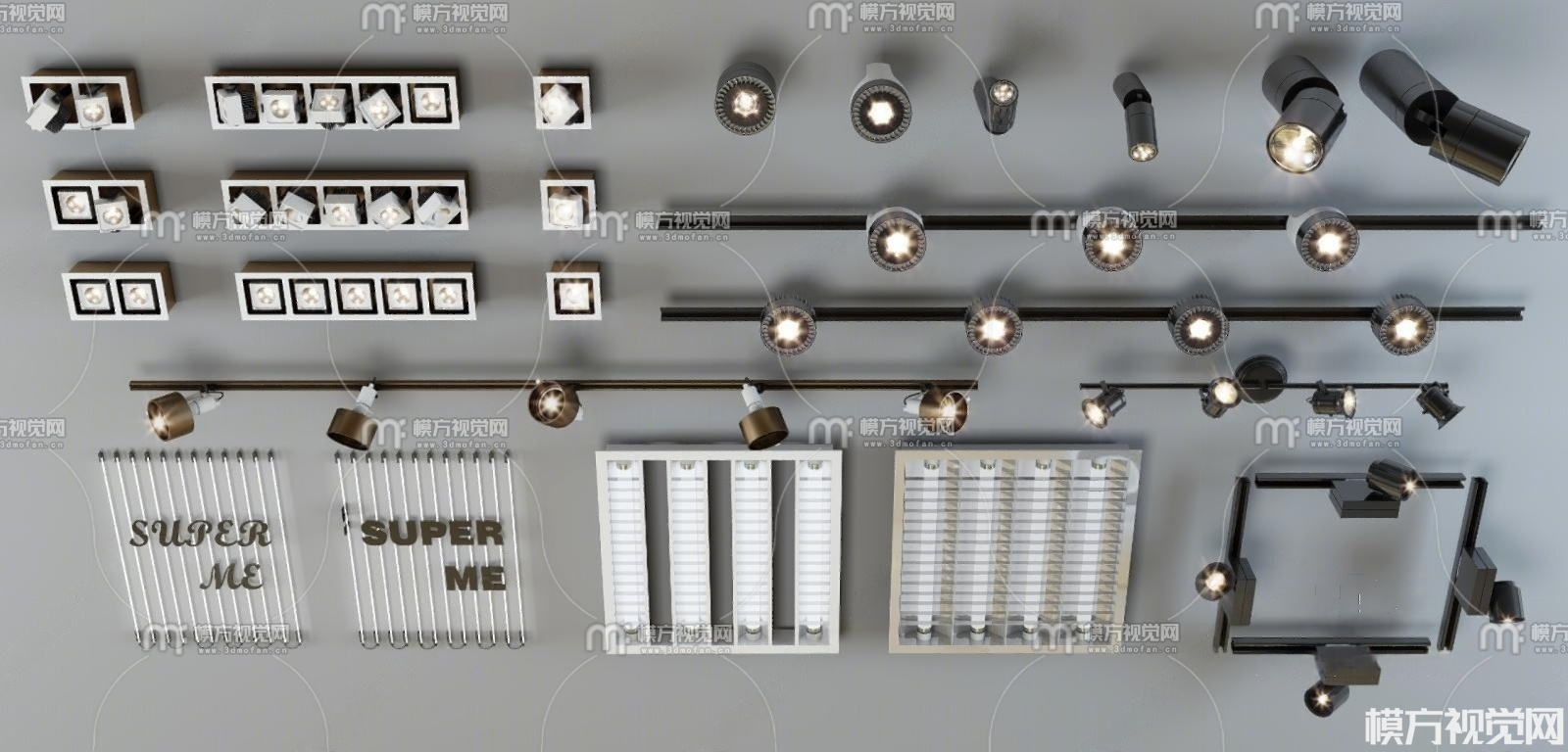 轨道射灯 筒灯 格栅灯3D模型(ID:0023243)