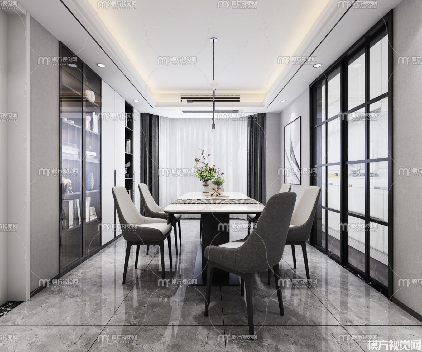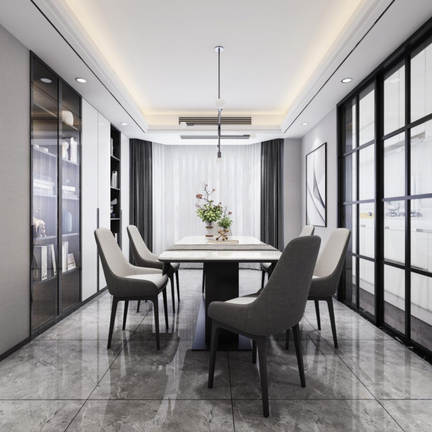 黑白灰客餐厅3D模型(ID:0023252)