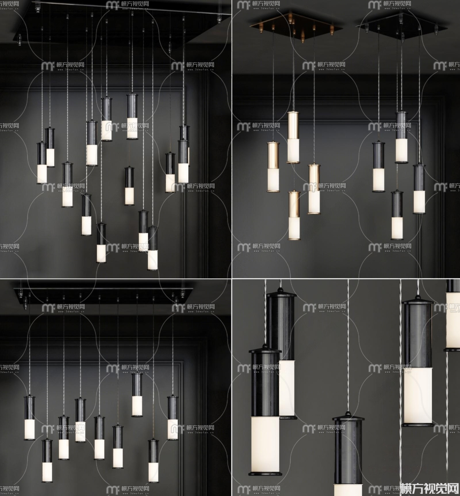 黑白简约风吊灯组合3D模型(ID:0023254)